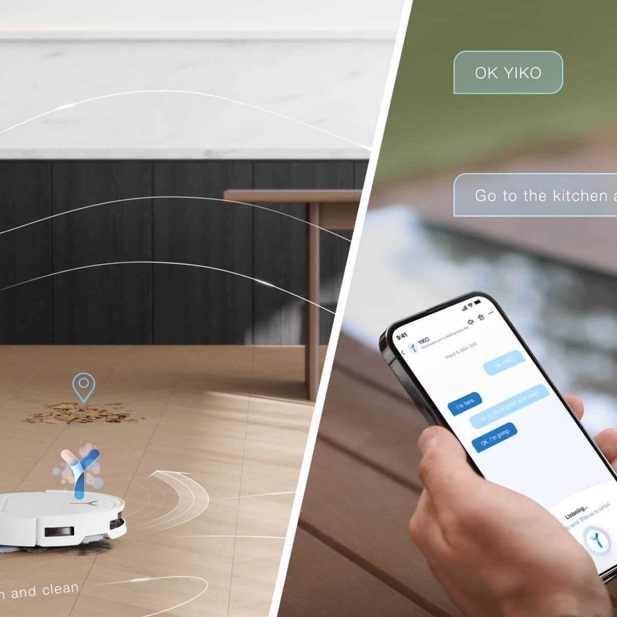 Ovládajte svoj robotický vysávač ECOVACS DEEBOT T50 PRO OMNI pohodlne pomocou hlasového asistenta YIKO-GTP, cez aplikáciu ECOVACS HOME alebo cez Apple Watch. Kedykoľvek a kdekoľvek.