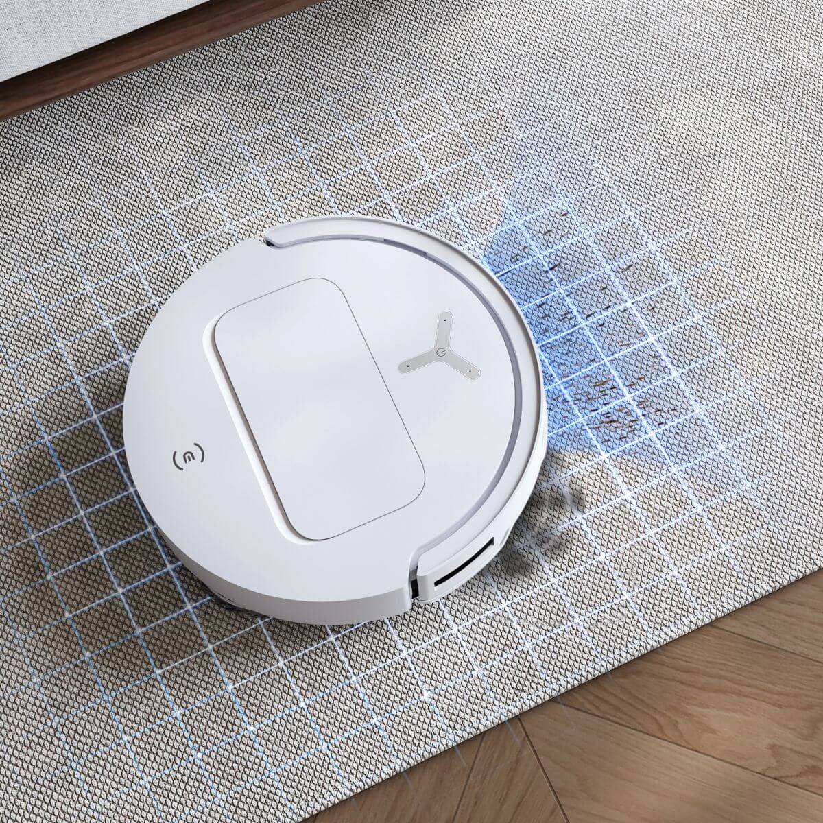 Udržujte svoje koberce čisté a suché pomocou funkcie „čistiť koberce ako prvé“. Po jej aktivovaní robotický vysávač ECOVACS DEEBOT T50 PRO OMNI najskôr povysáva koberce, až potom si namočí mopy. Následne vyčistí ostatné oblasti. Aktivovaním funkcie „čistiť koberce do hĺbky“ ich bude robot vysávať cik-cakovým pohybom. Tým sa zvýši čistiaci výkon a koberce budú povysávané ešte dôkladnejšie.